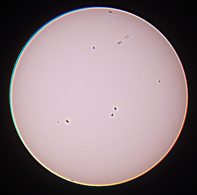 En la siguiente imagen se observa con mejor definición el ciclo planetario siendo en el norte detectada una alteración compatible con un cráter. Se obtuvo a salida de ocular con un Telescopio 90/900 con ocular 25 mm, lente de Barlow 2x, total 72x.